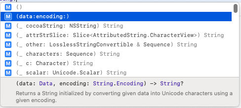 encode 메소드의 반환타입은 Data 타입임을 위의 사진에서 알 수 있고, 그러니 우리가 원하는 JSON을 보려면 String으로 변환을 해줘야 한다.