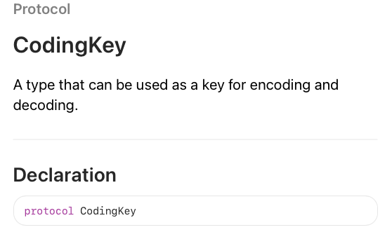 해당 프로토콜을 JSON 변환될 클래스의 내부 열거형에 채택해주고, JSON의 키와 클래스 프로퍼티를 맵핑(연결)하면 된다.