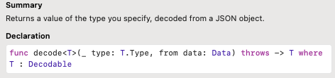 얘도 동일하게 제네릭으로 타입 제한 걸려있고(Decodable 채택한 타입만), 오류를 던질 수 있게 되어있다.