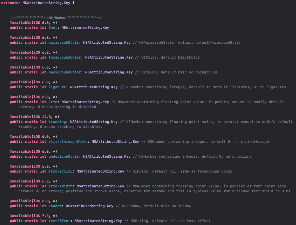let attributes: [NSAttributedString.Key: Any] = [.font: font]