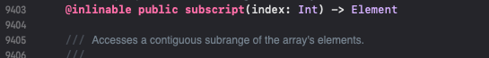 파라미터로 인덱스(Int)를 받아 배열의 요소를 반환하는 형태이다.