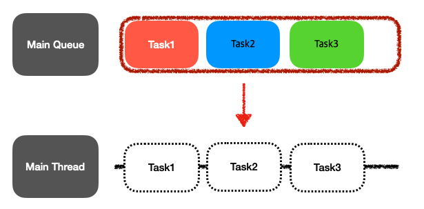 이런 이유로 Main Queue는 Serial 한 속성을 가지게 된다.