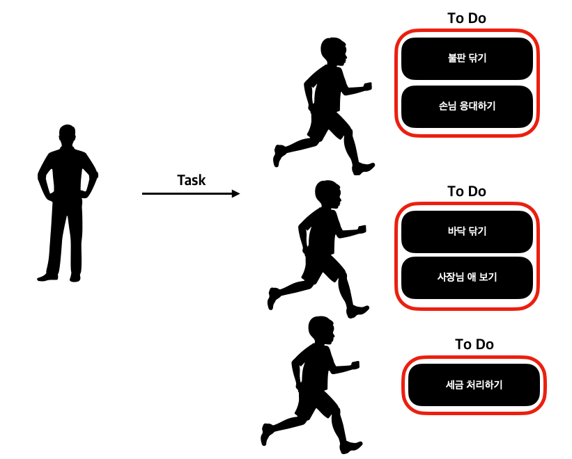 알바생을 더 써서 일을 나눈다면 이전보다 훨씬 효율적으로 일을 처리할 수 있을 것이다.