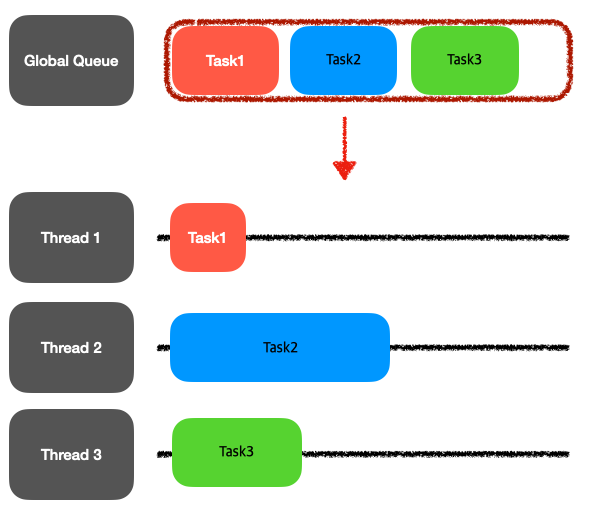 우리가 큐로 작업을 보내면 그 큐는 해당 작업을 처리하기 위해 특정 스레드에 작업을 보낸다.