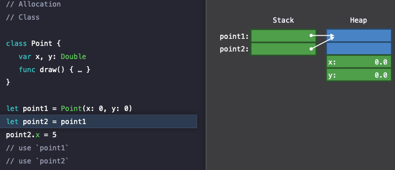 - 내가 만든 타입의 인스턴스가 어느 곳(Stack, Heap)에 할당되는지