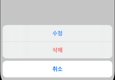 액션시트는 alert의 스타일 중 하나인데, 알림뜰 때 팝업의 스타일 중 하나라고 생각하면 된다.