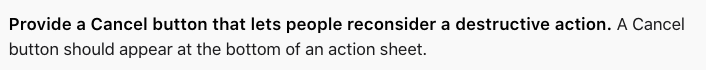 HIG에 명시된 것인데 cancel 스타일 버튼은 액션시트의 마지막!!에 와야 한단다.