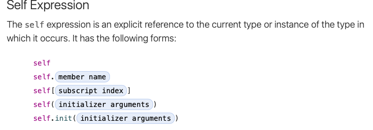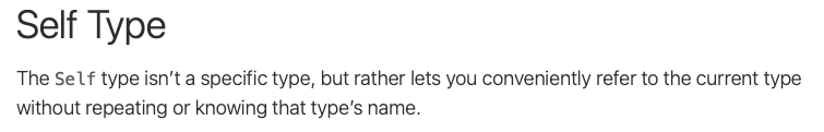 또한 Self는 상황에 따라 의미가 다를 수 있는데, 프로토콜과 클래스를 들어보겠다.