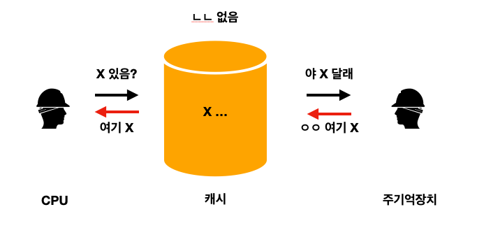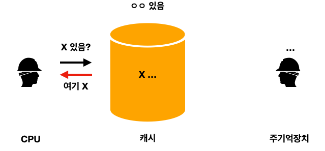 그림처럼 CPU는 굳이 주기억장치까지의 먼 길을 나서 데이터를 구할 필요없이 가까운 캐시에서 데이터를 구하면 되므로 비용을 아낄 수 있게된다.