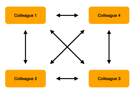 그렇기에 Mediator은 Colleague를 알아야하고, 메세지 내용 또한 알아야한다.