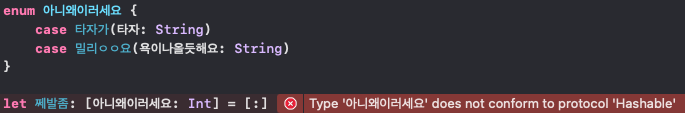 여까지 오면 이제 Hashable에 대한 에러는 사라졌을 것이다.