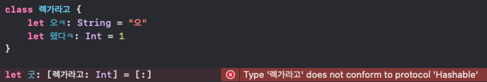 class 렉가라고: Hashable {