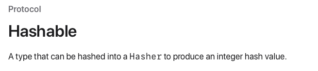 먼저 Hashable이란 정수 해시값을 제공하여 유일하게 표현이 가능한 방법을 제공하는 프로토콜이다.