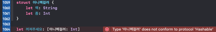 여까지 오면 이제 Hashable에 대한 에러는 사라졌을 것이다.