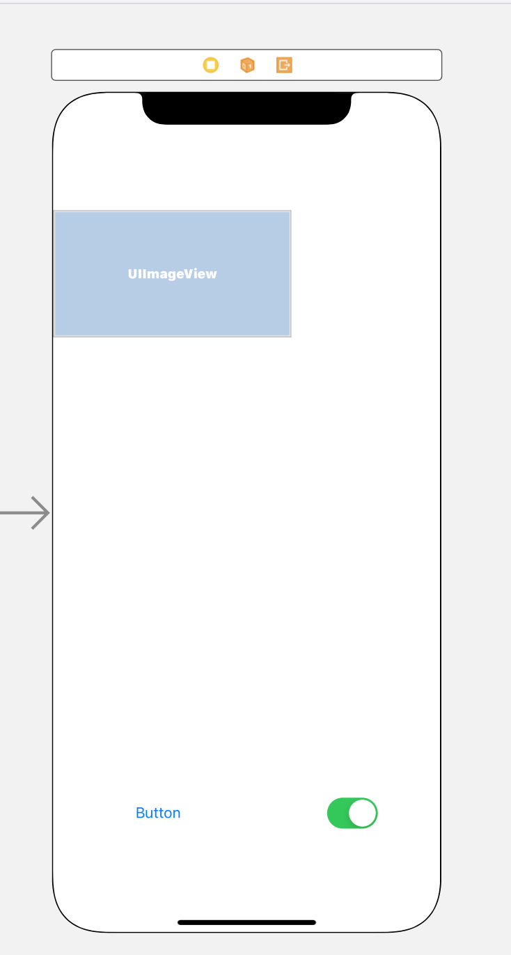 방법은 이미지뷰를 추가해줄 때와 똑같다. 라이브러리에서  Button, Switch를 찾아 스토리보드에 끌어와 추가하자