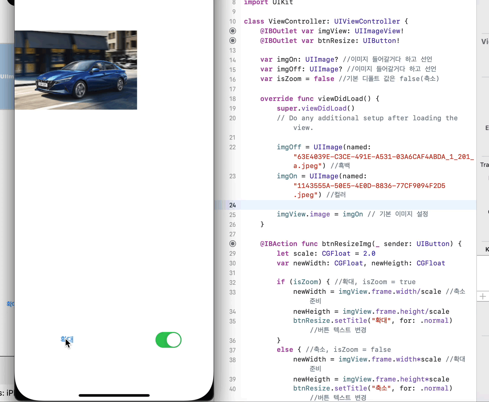 이번엔 이미지를 변경해줄 스위치와 확대버튼을 추가해보자