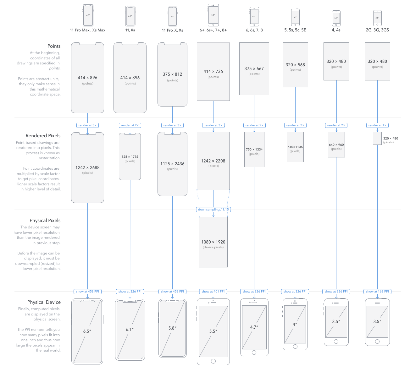 아이폰 기기별 권장 이미지 크기이다. 12, 12pro는 못찾았다. 애플 공식사이트에 나와있으니 참고하면 될 것 같다.