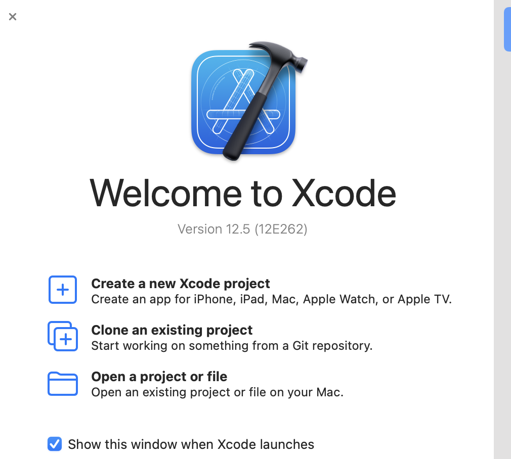 엑스코드를 실행하여 Create a new Xcode project로 새 프로젝트를 생성한다.