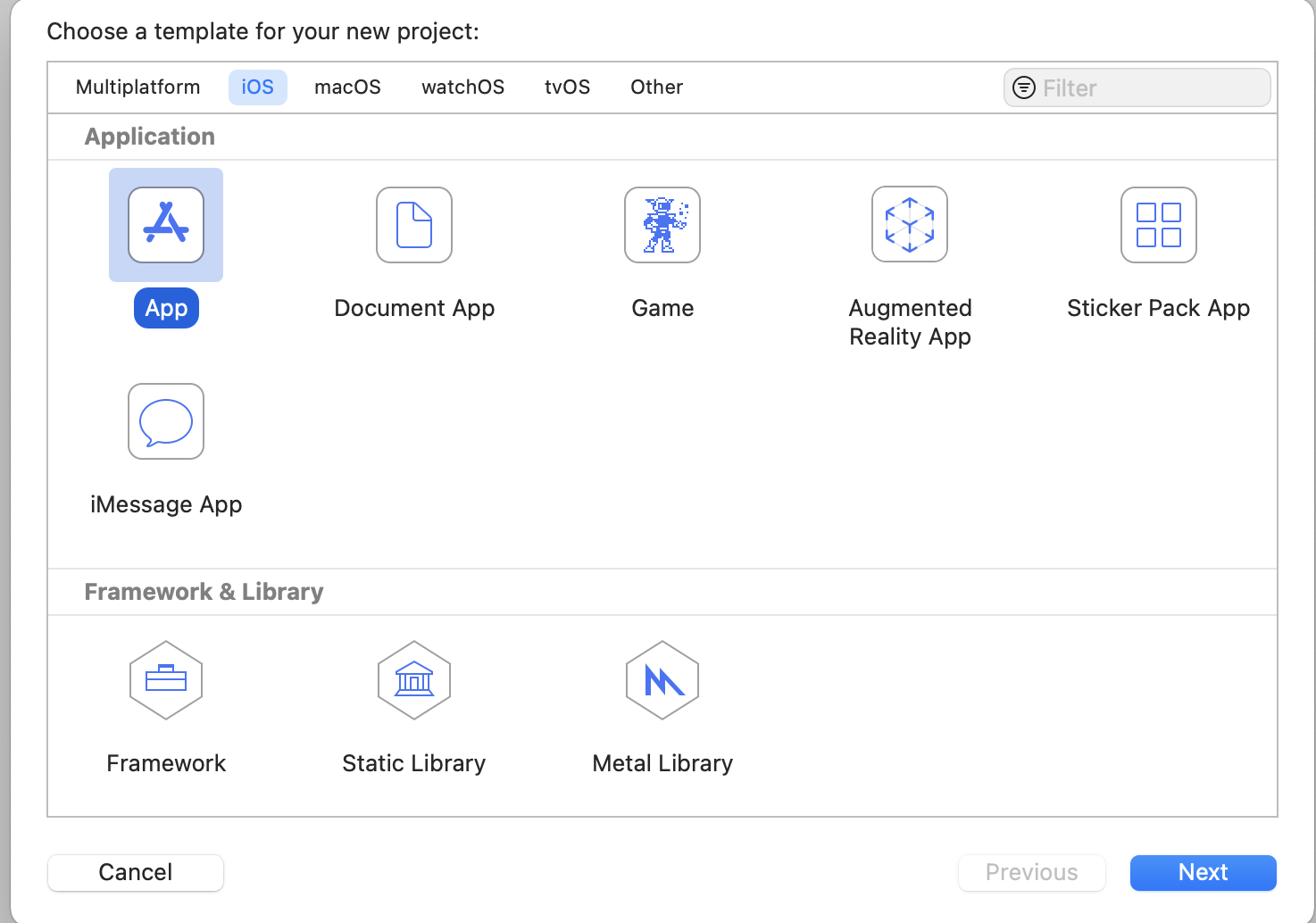 뷰를 사용하는 앱을 만들 것이니 App을 선택해주자