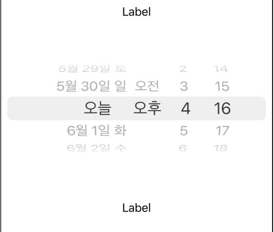 레이블은 현재 시간과 내가 DatePicker 로 설정한 값이 표시할 것이다.